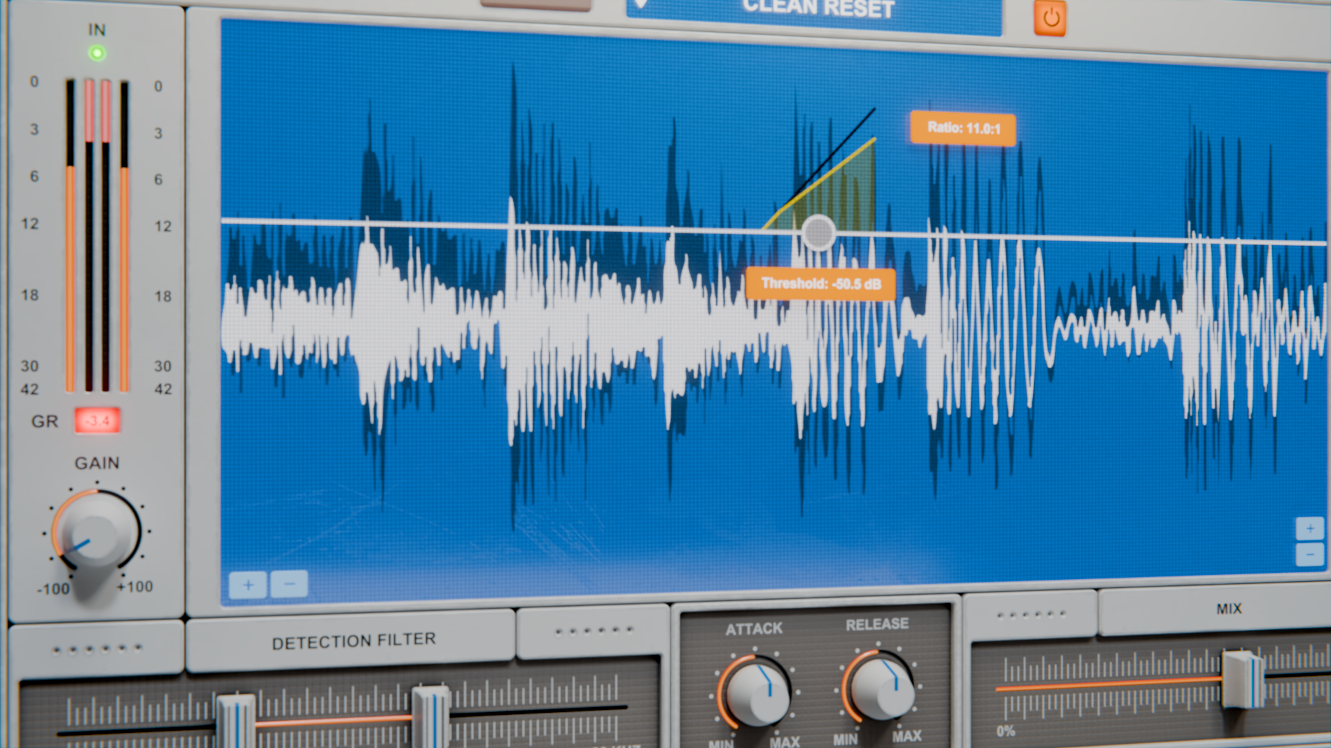 - Intuitive controls:Â Naturally shape your sound through interactive controls - includes attack, release, ratio, threshold, mix, and detection filter.